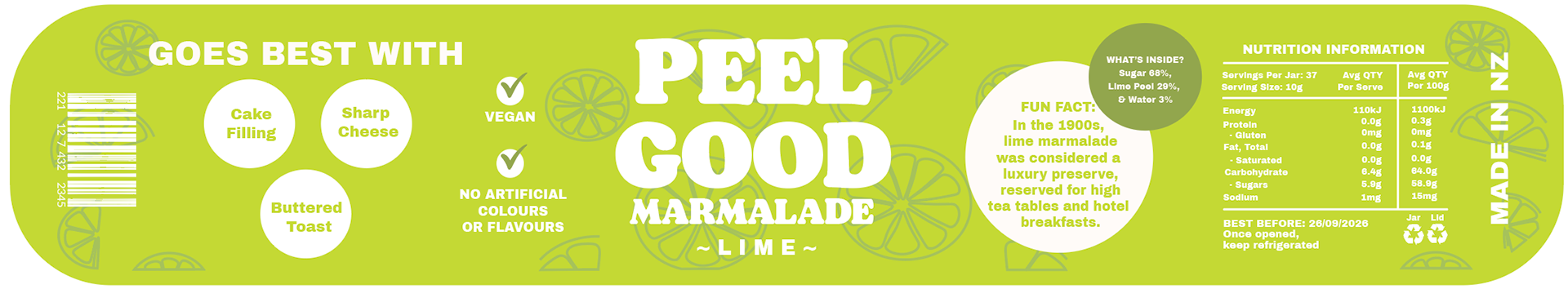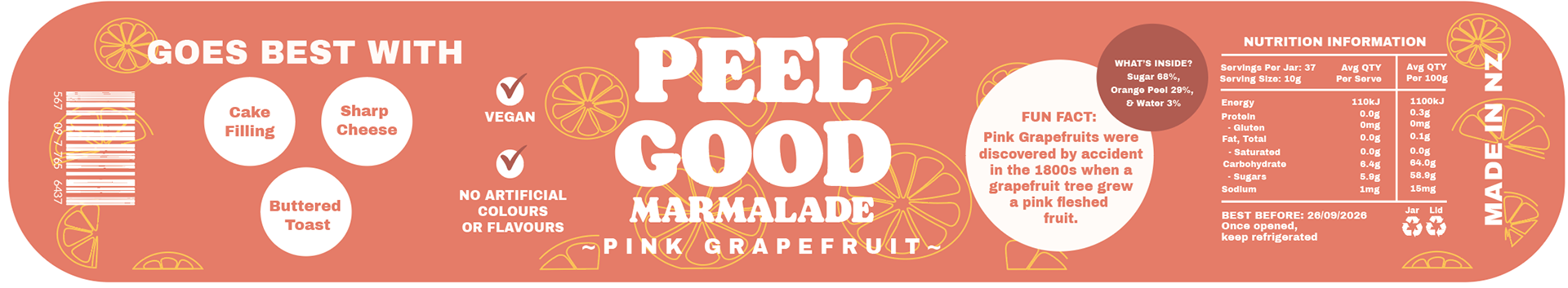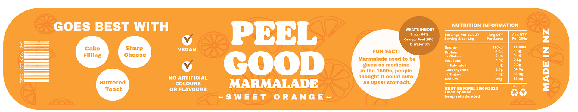 The name Peel Good is a play on words, you can feel good while eating it. Most people also mistake marmalade for jam, but there’s a difference: jam is made from berries, while marmalade originally comes from quince and citrus fruits.